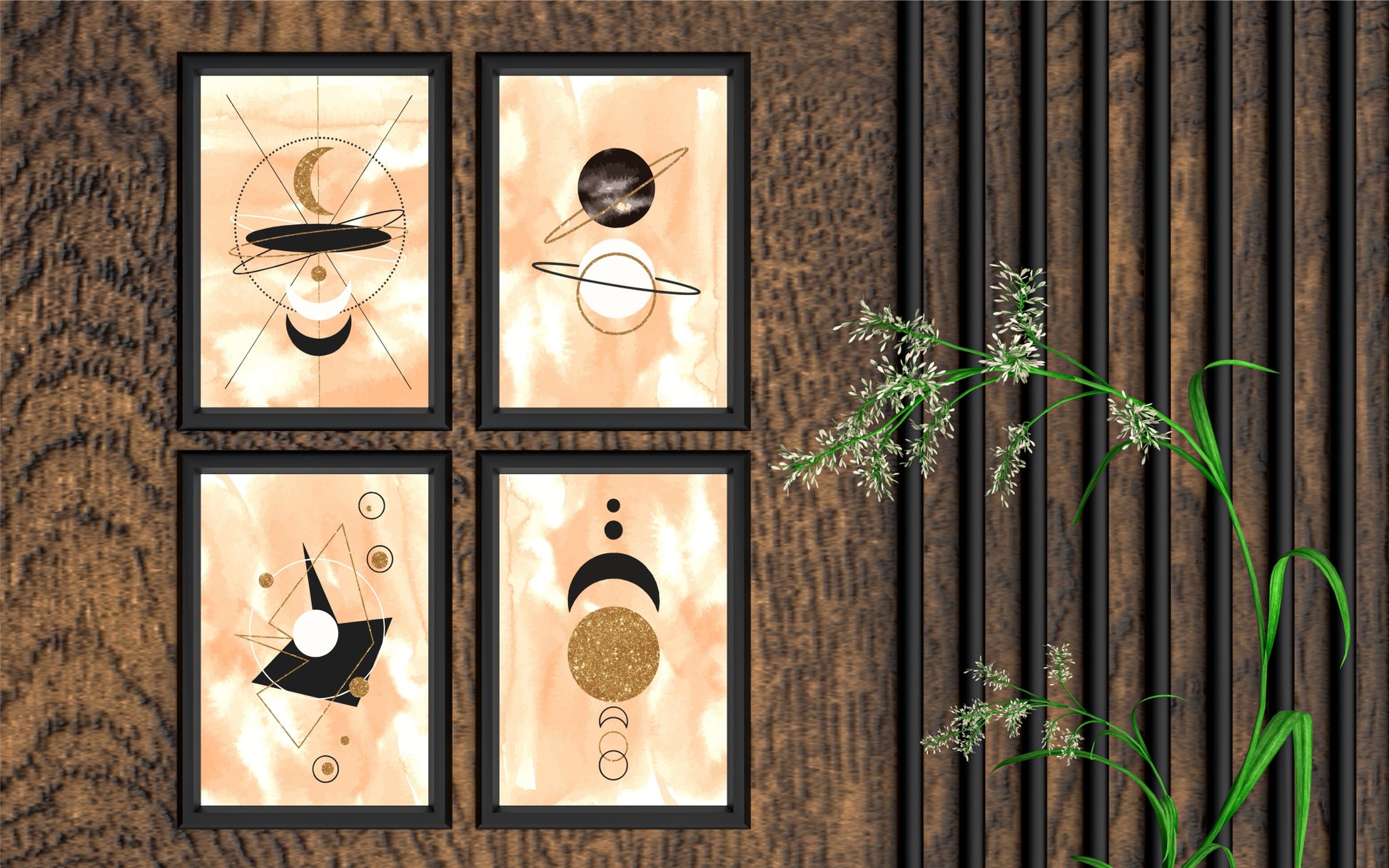 Celestial Geometry – Set of 4 Wall Frames πŸŒ™βœ¨