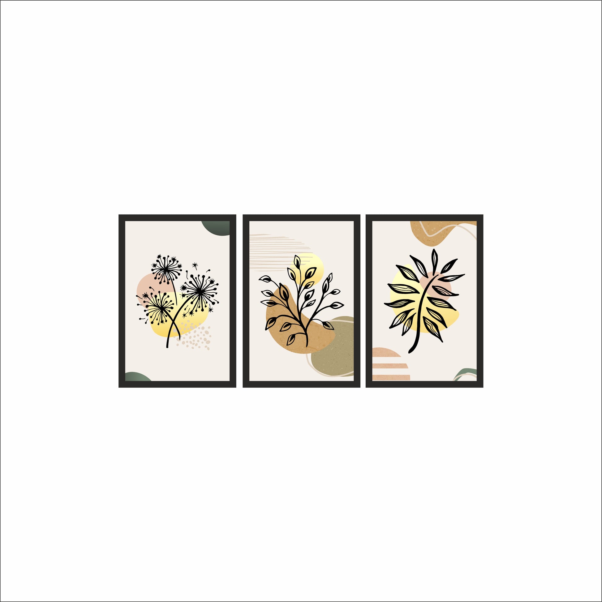 Enhance your walls with calm earthy aesthetics using this Botanical Abstract Wall Frame Set of 3. Each artwork features elegant nature-inspired line art over soft neutral backgrounds in tones like warm yellow, tan, olive green & peach — giving your décor a subtle yet artistic feel. Perfect choice for living rooms, bedrooms, offices, cafés & boutique interiors.