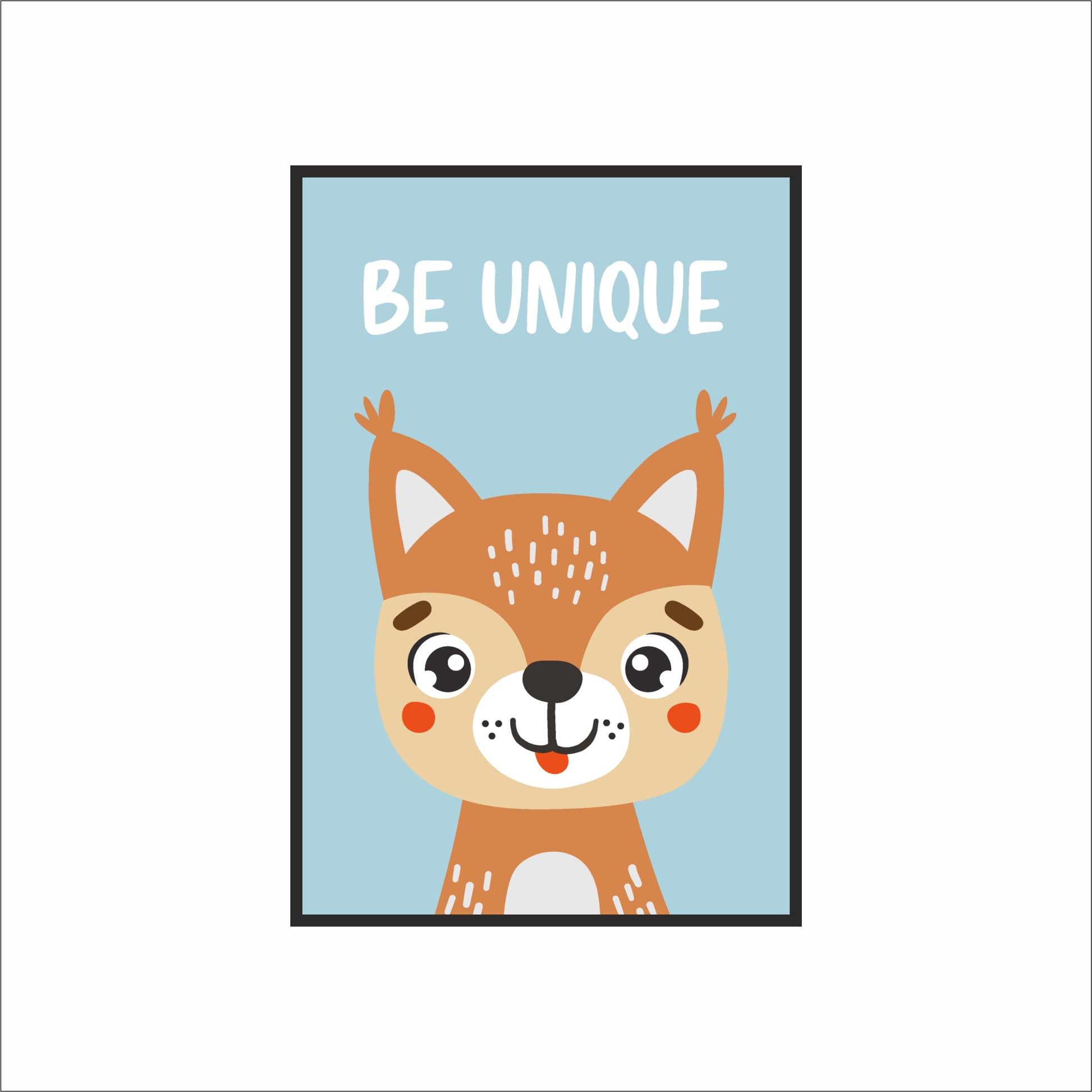 ✔ Single Frame – Cute deer illustration with “Be Unique” quote