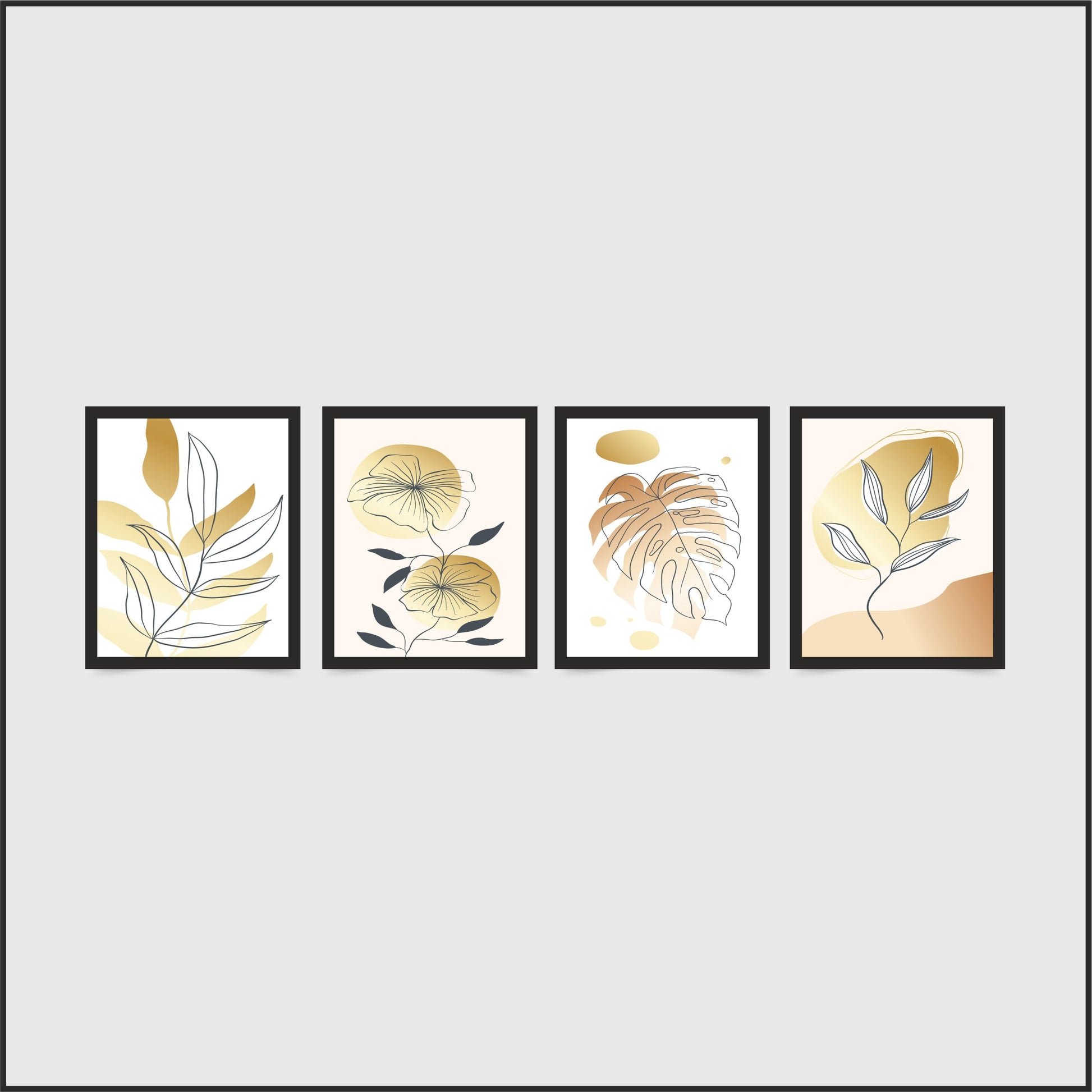 Golden Botanical Elegance β Set of 4 Wall Frames πΏβ¨