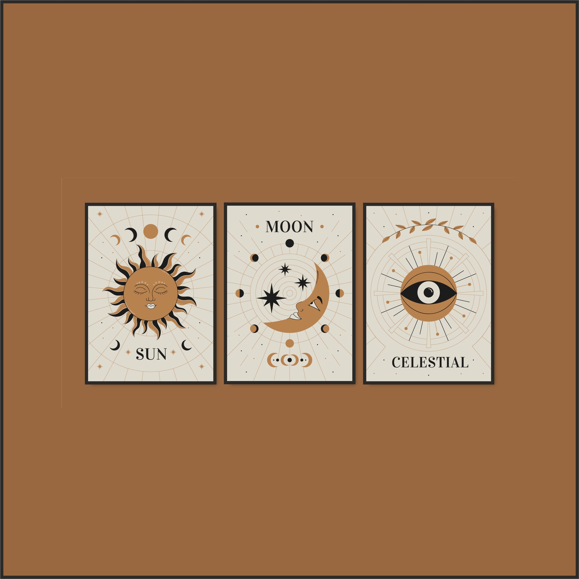 ✔ Design: Sun – Moon – Celestial Eye (Set of 3)